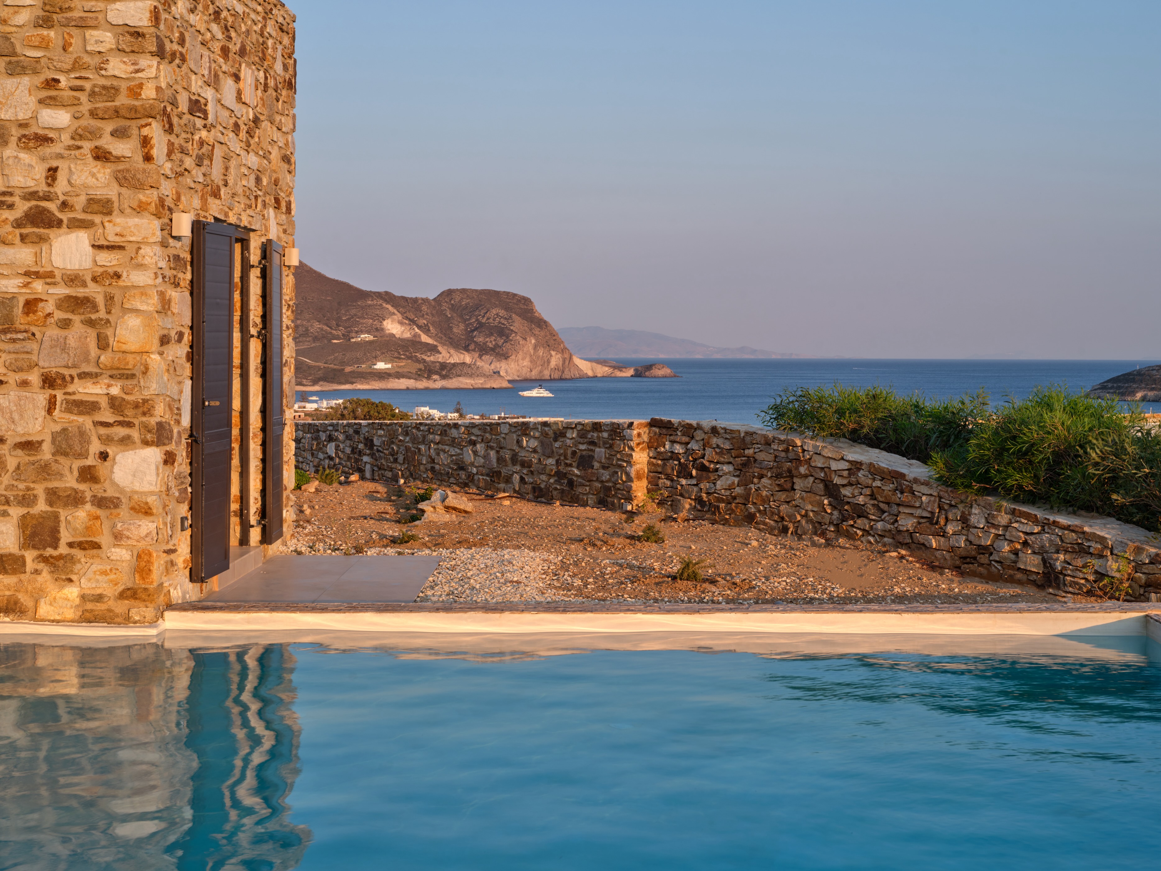 Wake up to the soothing sound of waves and the sight of the sunrise over the Aegean.