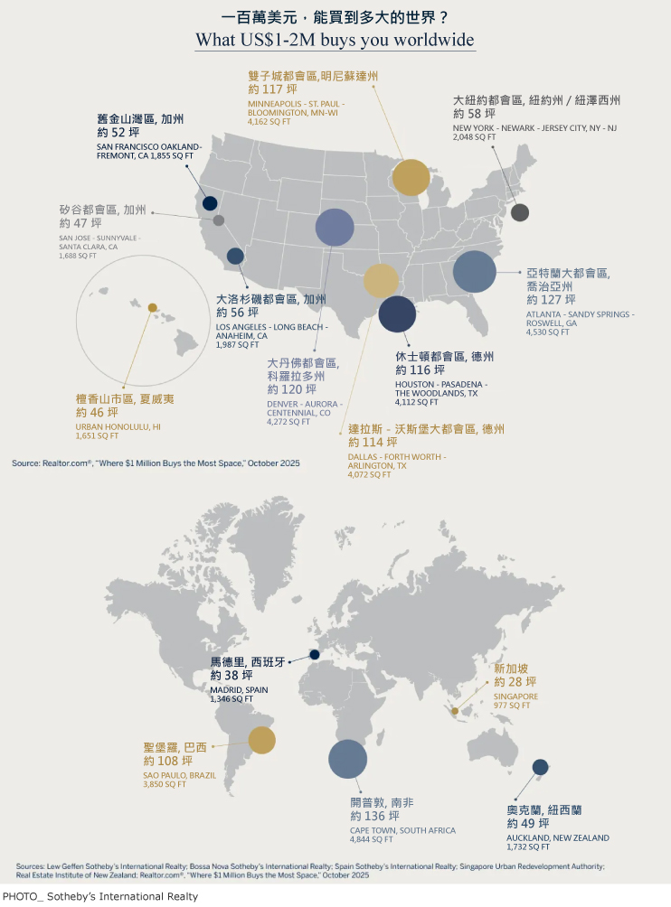 若將視角拉至國際市場,百萬美元的購屋實力又會如何轉換?