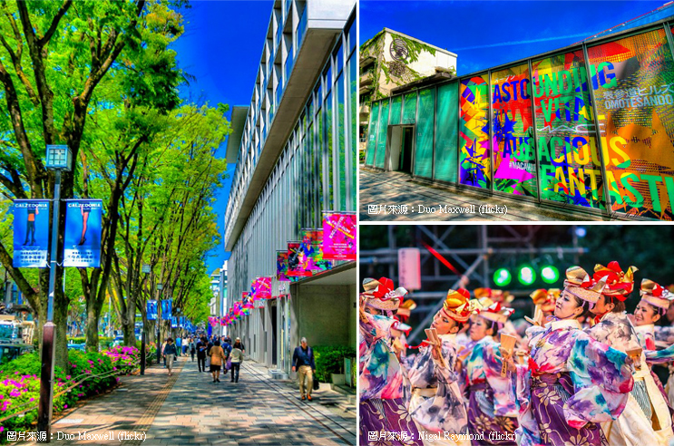 表參道,位於東京西南部,比鄰澀谷,並由南青山延伸至原宿。除了擁有「東方的香榭麗舍大道」美稱,更是亞洲最重要的時尚購物勝地之一。提到表參道,最廣為人知的便是國際級建築大師安藤忠雄設計的百貨「表參道 HILLS」。透過特殊的狹長型建物規劃,及依照地形坡度打造的螺旋式坡道,串聯起每一個商家,成為此區域必朝聖的地標。此外,密集排列的行道樹所形成之林蔭道,則聚集許多時髦咖啡廳和國際各大精品品牌,濃濃展現歐洲風情和優雅氛圍。表參道,可以說是建築、藝術、時尚三大指標結合下的黃金地帶,吸引世界各地的旅人前往遊覽。