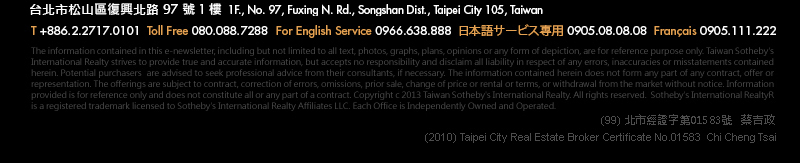 If you prefer not to receive promotional email from Taiwan Sotheby's International Realty, please click here.